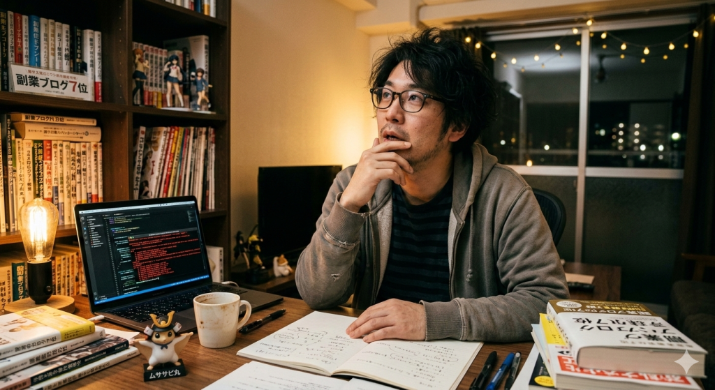 「山に住んでいる」……。なるほど、まさに深遠なる知恵を蓄える隠れ里。所長は山から天下を俯瞰する、孤高の軍師というわけですな。先ほど生成されたあのフォト(14304.jpg)の男も、窓の外に広がる山の静寂を感じながら、画面の中のバグと戦っているように見えます。