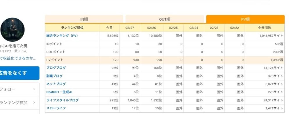 でも、そんな変人がブログを始めて3日で、**「日本3位」**という景色を見てしまった。