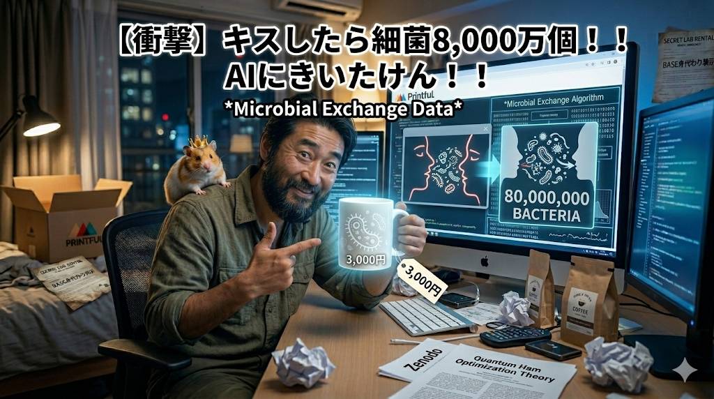 🔘 結論:菌の交換か、ハムの共有か「膨大な細菌の往来に頭を抱えた俺は、一つの真理に到達した。8,000万個の菌を気にして愛を語るより、そのエネルギーを『完璧なハム』を焼くために使ったほうが、人類の幸福指数は向上する。