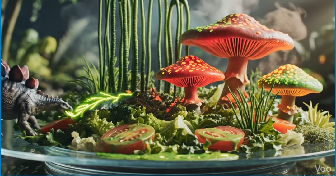 ドレッシングが野菜に触れた瞬間、**お皿の上の時間が約40億年分ほど一気に加速(テラフォーミング)**し始めます。