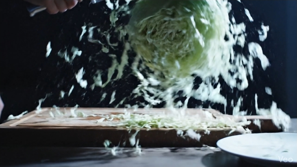 1. 深夜のキッチンにキャベツを置く