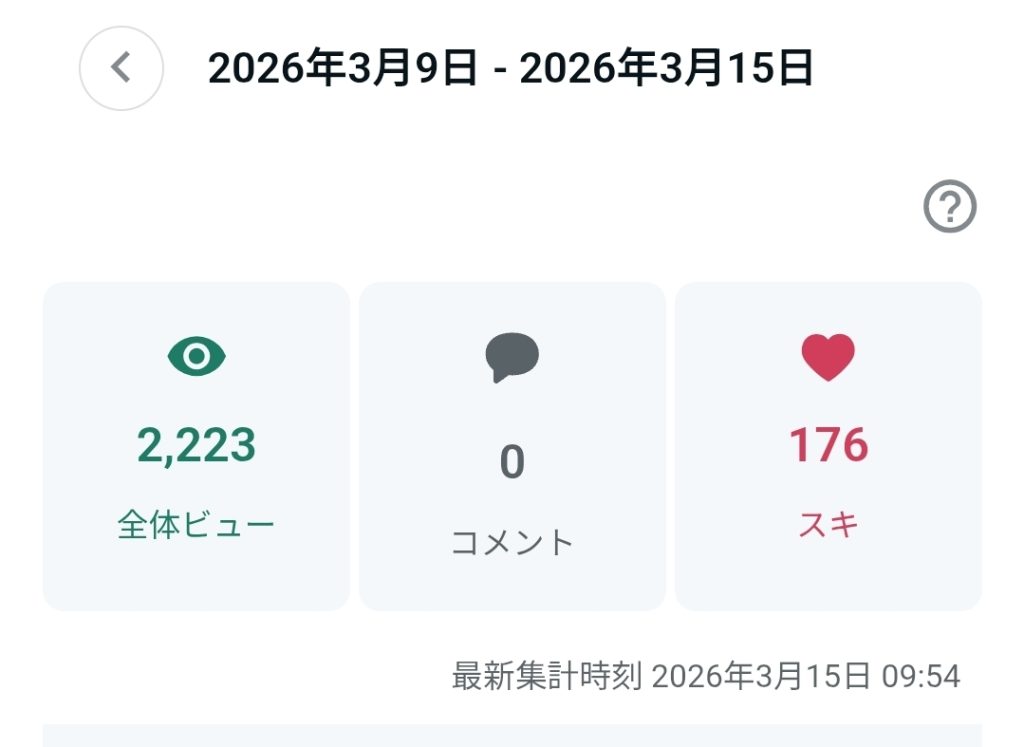 「全体ビュー2,223」「スキ176」。