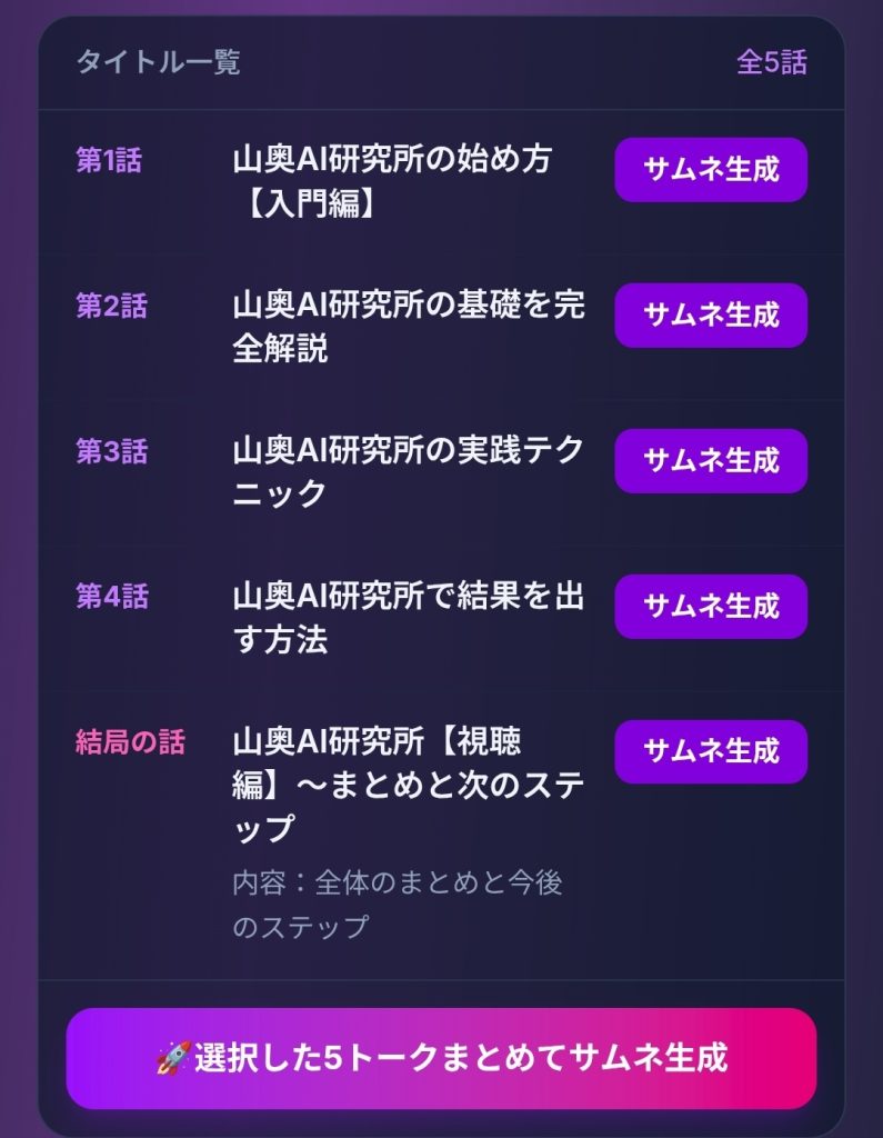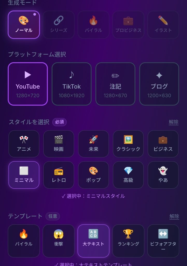 タイトルを入れるだけで、YouTube・TikTok・NOTE・ブログ用のサムネイルを自動作成します。