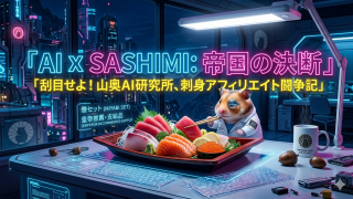 ​AdSenseに落ちた?ならば刺身を貼るまでよ!山奥AI研究所の皇帝が、最新AIを駆使して「最もコスパの良い刺身」を特定。368億円の埋蔵利益を狙う帝国の、愛と刺身のアフィリエイト闘争記。刮目せよ、さらなる衝撃が待っておるぞ!🐣⚡️