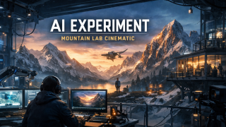 AI experiment creating cinematic AI videos in a mountain laboratory. Experiment #094 explores AI generated environments and visual scenes.